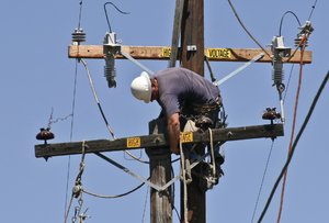 man replacing power pole